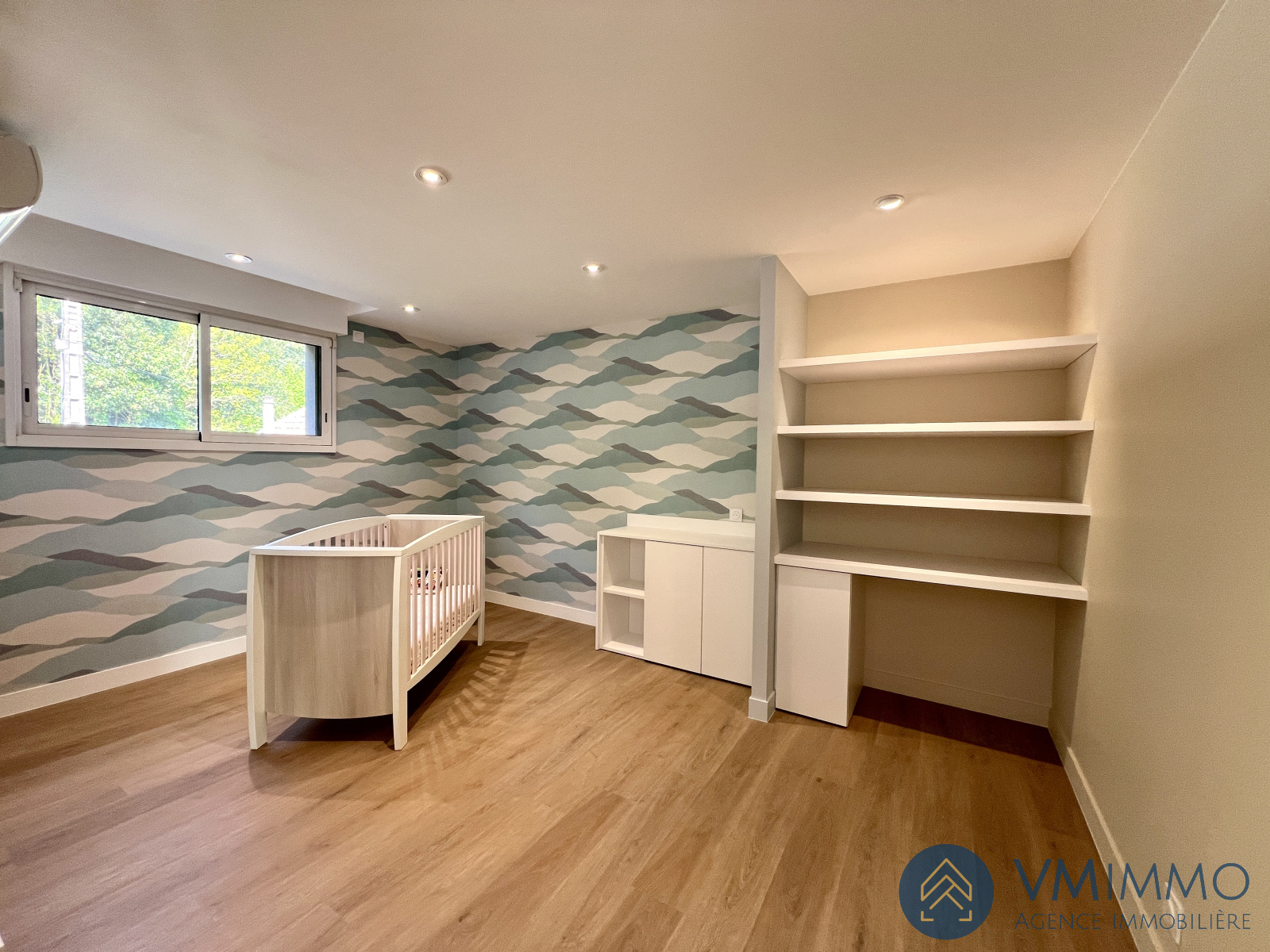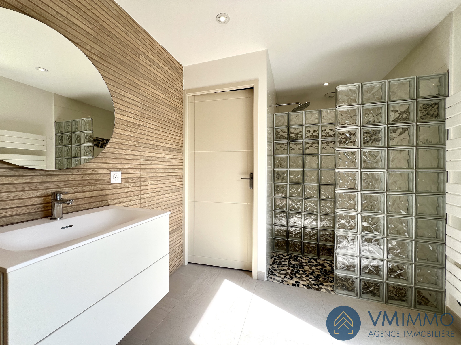 À l’étage, vous découvrirer trois grandes chambres confortables, une salle de bains avec double douche à l'italienne et une baignoire. Egalement, une pièce pallière aménagée en dressing XXL viendra parfaire cet espace nuit.