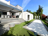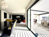 Au rez-de-chaussée, vous découvrirez une entrée spacieuse, s'ouvrant sur un vaste salon/salle à manger lumineux accompagné de sa cuisine spacieuse et fonctionnelle entièrement aménagée et équipée. La pièce de vie est prolongée par une grande terrasse semi-couverte par une pergola bio-climatique.