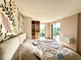 L'espace nuit sur ce niveau est composé d'une grande double suite parentale avec une chambre, un coin nuit supplémentaire, une salle de douche avec wc et son accès au jardin.