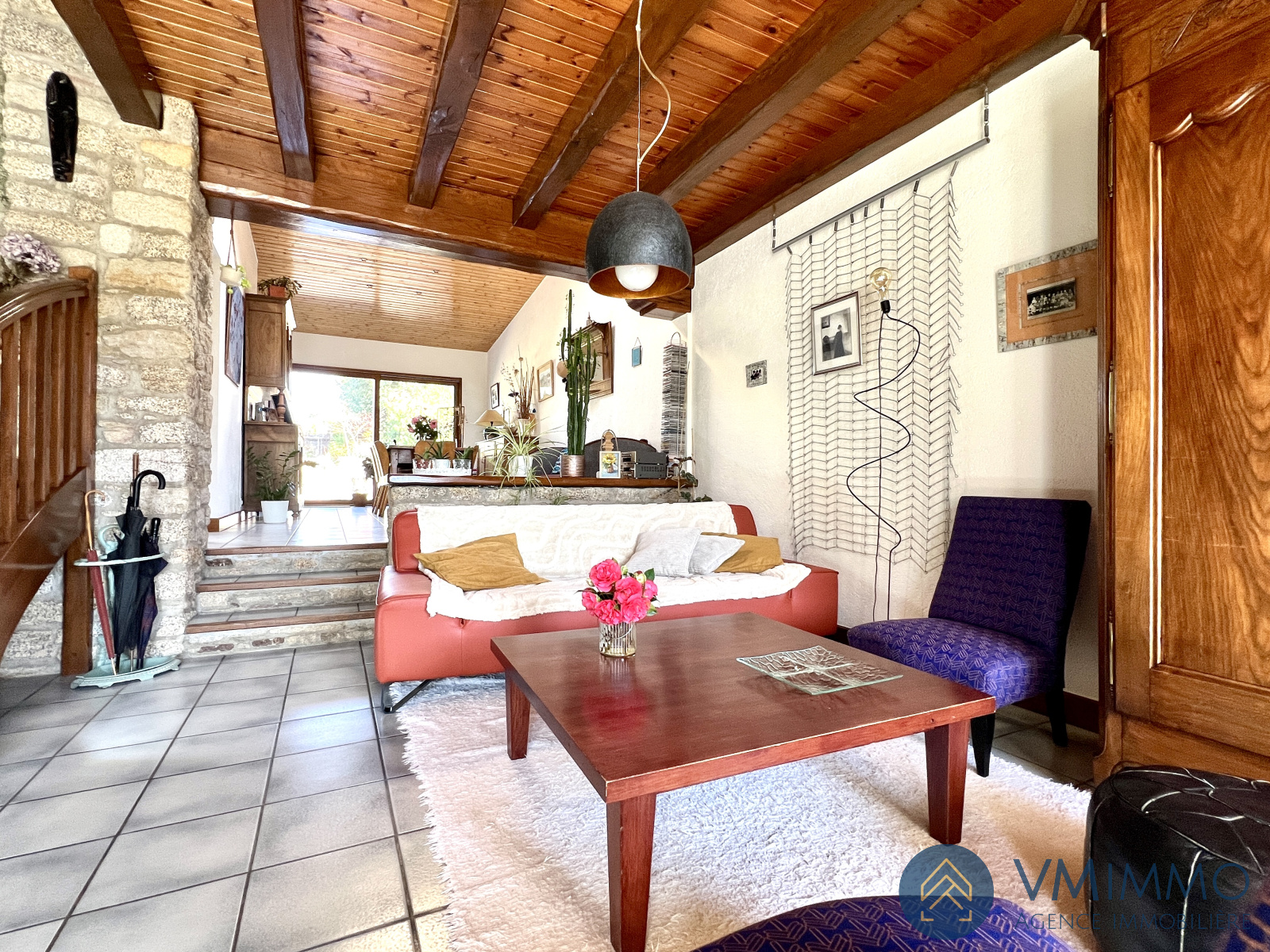 La maison se compose d'une double pièce de vie traversante avec ses pierres et sa cheminée unique. Une grande cuisine familiale et dinatoire donnant accès aux deux terrasses et au jardin entièrement cloturé de 1000m². Au rez-de-chaussée vous trouverez également une chambre, deux salles d'eau et une grande pièce de loisir et buanderie. Enfin, un grand garage de près de 60m² complète ce niveau.