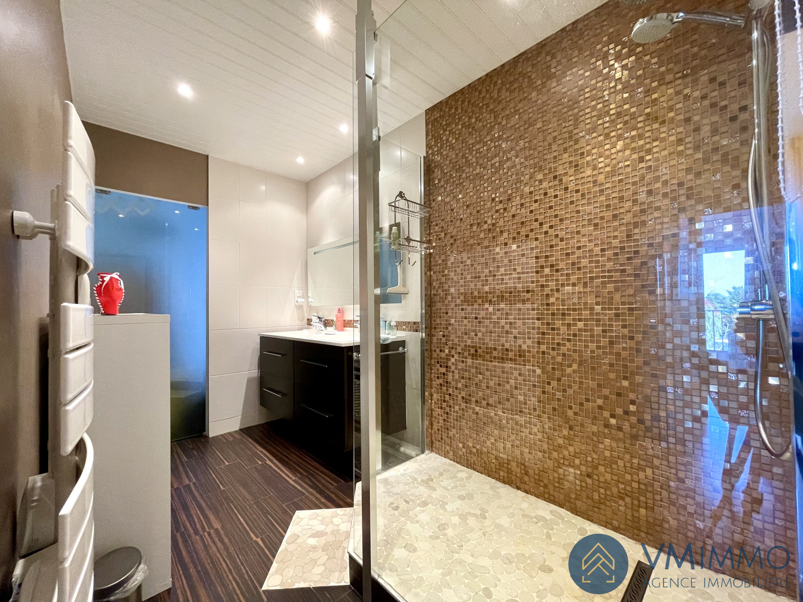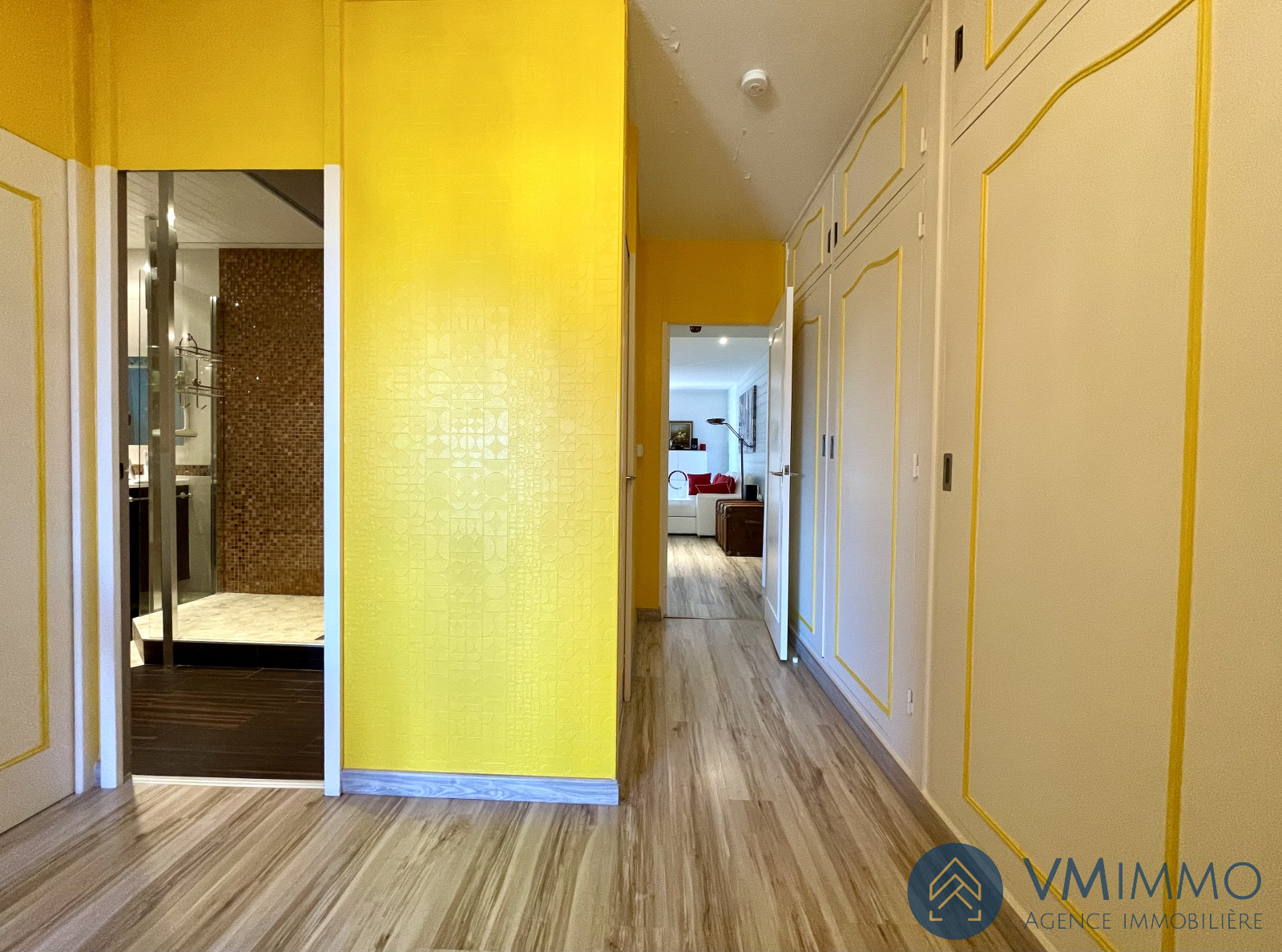 Pour accéder à l'espace de nuit, vous passez par un couloir avec de nombreux rangements, un wc séparé, une trés belle salle d'eau moderne et une buanderie.