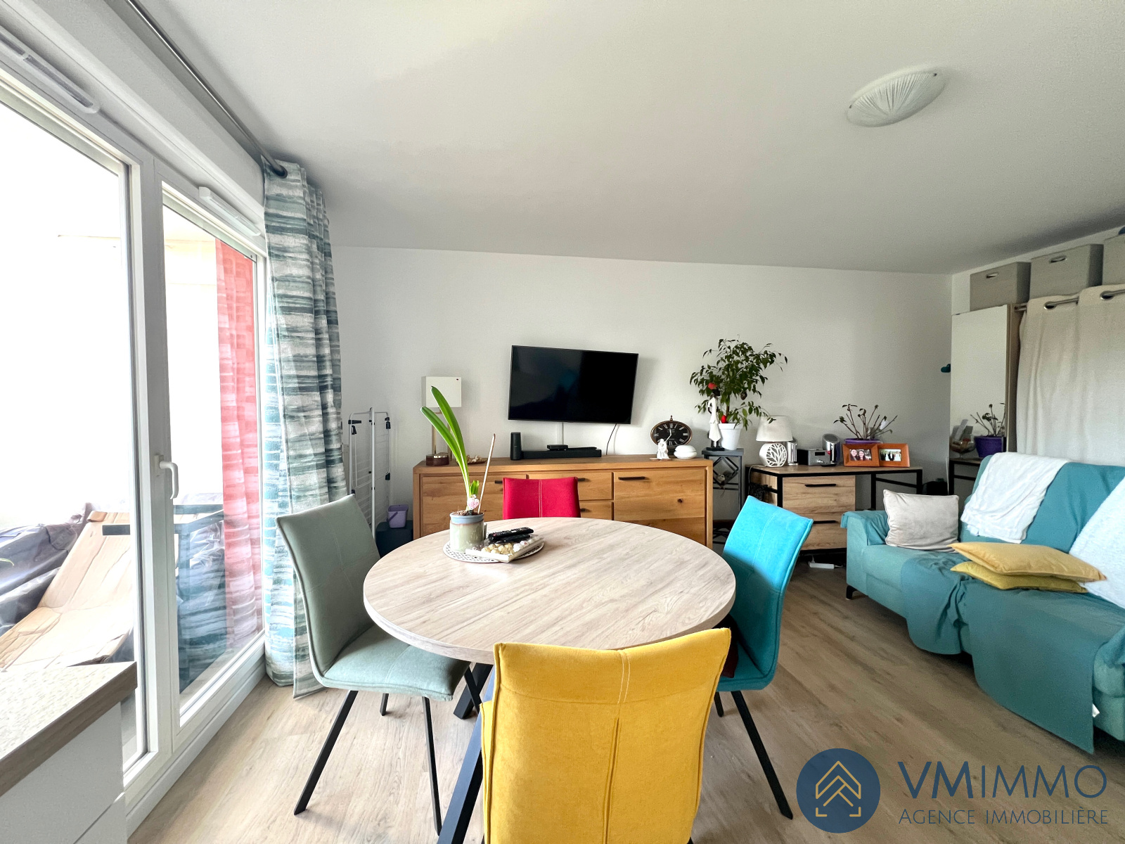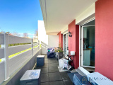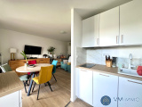 L'appartement se compose d'une entrée, une pièce de vie ouverte sur la grande terrasse exposée plein sud avec sa cuisine aménagée et équipée.