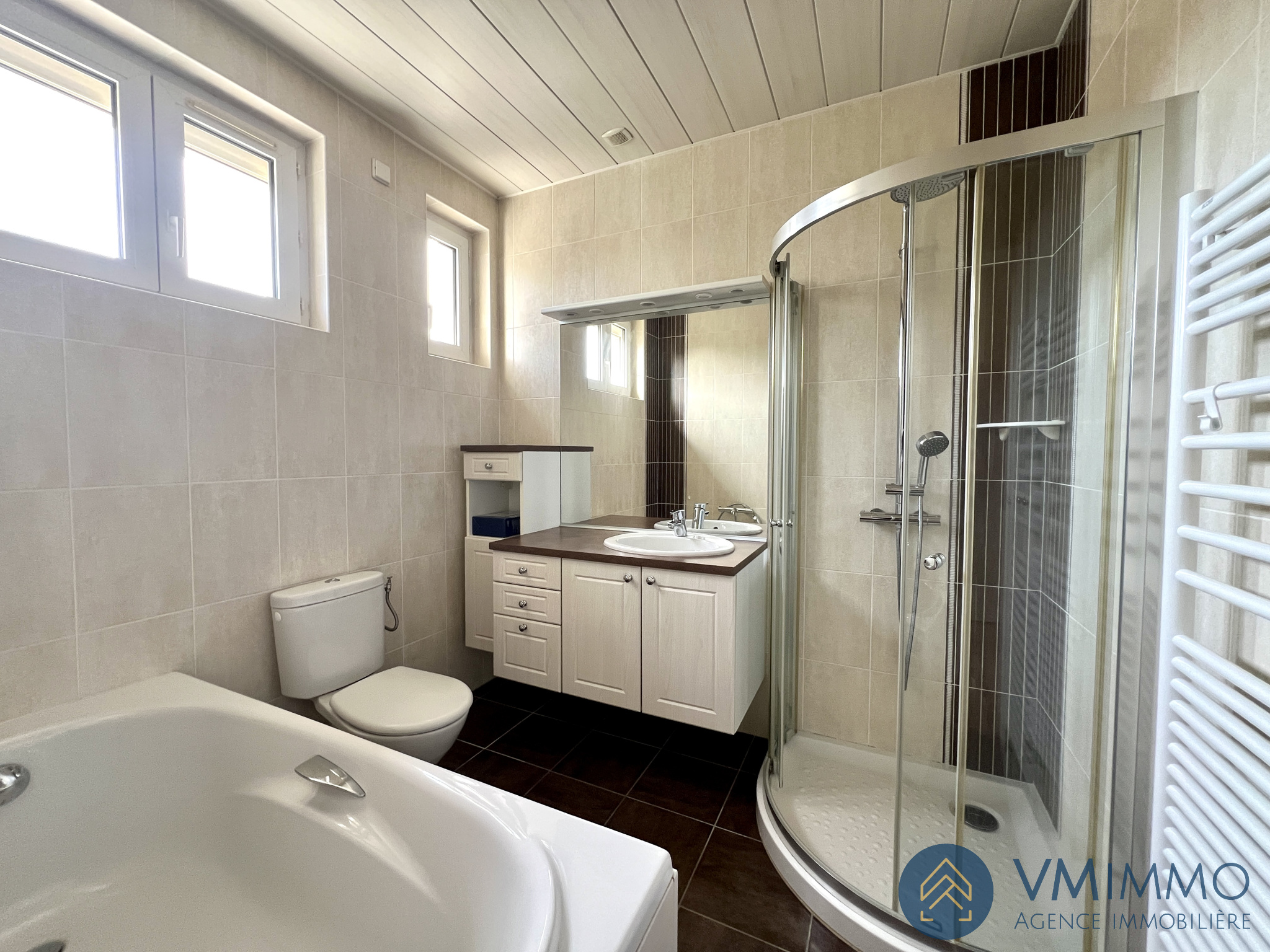 A l'étage, trois belles chambres et une salle de bain avec douche et baignoire.
